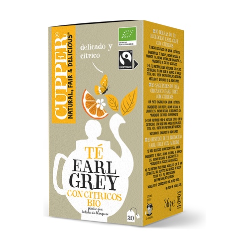 A Cupper bio Earl Grey (fekete tea) citrusokkal egy olyan termék, amely fekete teát kombinál citrusos jegyekkel, frissítő ízt kínálva. Ideális az energizáláshoz és egy természetes, organikus ital élvezetéhez.