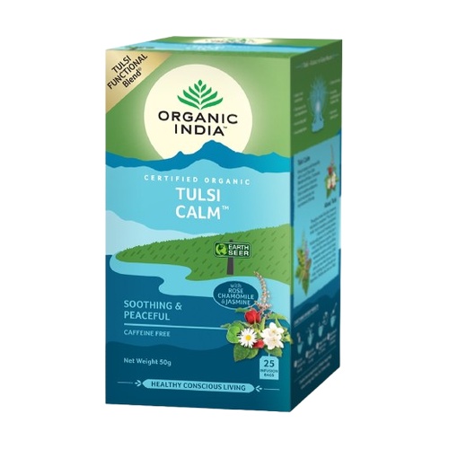 Organic India Tulsi Calm egy ájurvédikus gyógytea, amely békét és nyugalmat hoz az életedbe. Fontos ájurvédikus gyógynövények az idegrendszer számára, mint a Tulsi, Brahmi Gotu Kola, Bacopa és Ashwagandha keverednek jázminnal, kamillával és rózsával, hogy bármikor a nap folyamán megnyugtassák nyugtalanságodat.