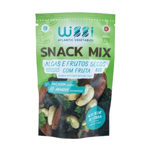 Wissi bio áfonyás algás és olajos magvakból álló snack keverék, biológiai összetevőkből, készen arra, hogy bármely étkezéskor vagy a nap bármely szakában elfogyasszák, valamint sporttevékenységek kiegészítőjeként is.