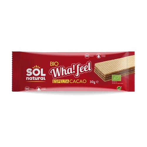 A Wha feel bio tönkölybúza és kakaó snack a Sol Natural-tól egy ökológiai termék, amely a legmagasabb minőséget képviseli, és tápanyagokat biztosít egészségünk számára.