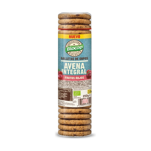 Teljes kiőrlésű zabpehely*31%, teljes kiőrlésű buzaliszt*30%, napraforgómagolaj*, nádcukor*, vörös áfonya*10% (vörös áfonya*, koncentrált almalé*, napraforgómagolaj*), árpamaláta*, sütőanyagok (ammónium-hidrogén-karbonát, nátrium-hidrogén-karbonát), természetes málna aroma, só. *biológiai gazdálkodásból.