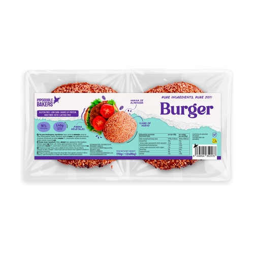 Impossible Bakers hamburgerzsemle, az állaga és az íze a kedvenced lesz, és a tulajdonságai igazi szerelemmé teszik. Ez a zsemle 16% fehérjét tartalmaz, és csak 1,45 g szénhidrátot adagonként. Amikor megkóstolod, nem fogod elhinni. Emellett gluténmentes, laktózmentes és magas rosttartalmú, hogy javítsa az emésztésedet. Minden hamburgerzsemle átmérője 8 és 10 cm között van.