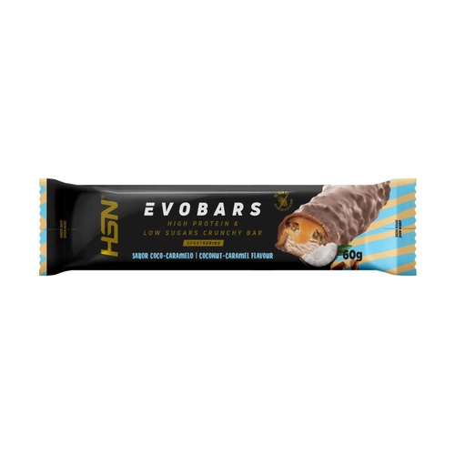HSN Evobars kókusz-karamell ízű fehérjeszelet. Kiváló minőségű fehérjeszelet azok számára, akik ízletes és tápláló nassolnivalót keresnek. Kókusz és karamell ízű, hozzáadott cukor nélkül, krémes karamell belsővel és ropogós szója darabokkal, körülbelül 20 g fehérjét tartalmaz szeletenként, alacsony cukortartalommal. Pálmaolaj nélkül, válogatott összetevőkkel és gondosan kialakított állaggal. Ideális, amikor valami kényelmes, finom és fehérjedús ételre van szükség.
